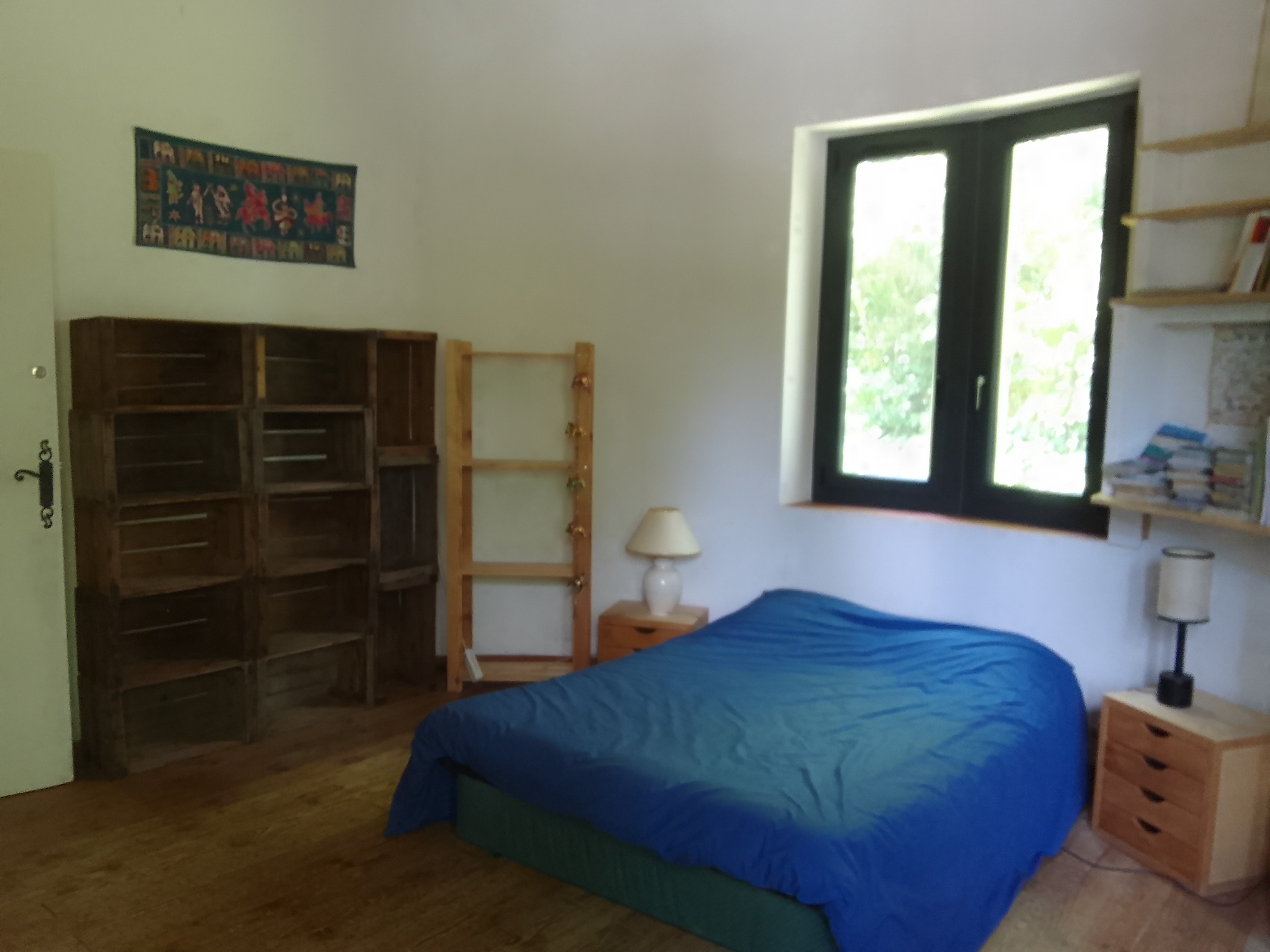 Elle est équipée d'un lit double. Et si on déplie le canapé-lit, elle peut accueillir jusqu'à 4 personnes.