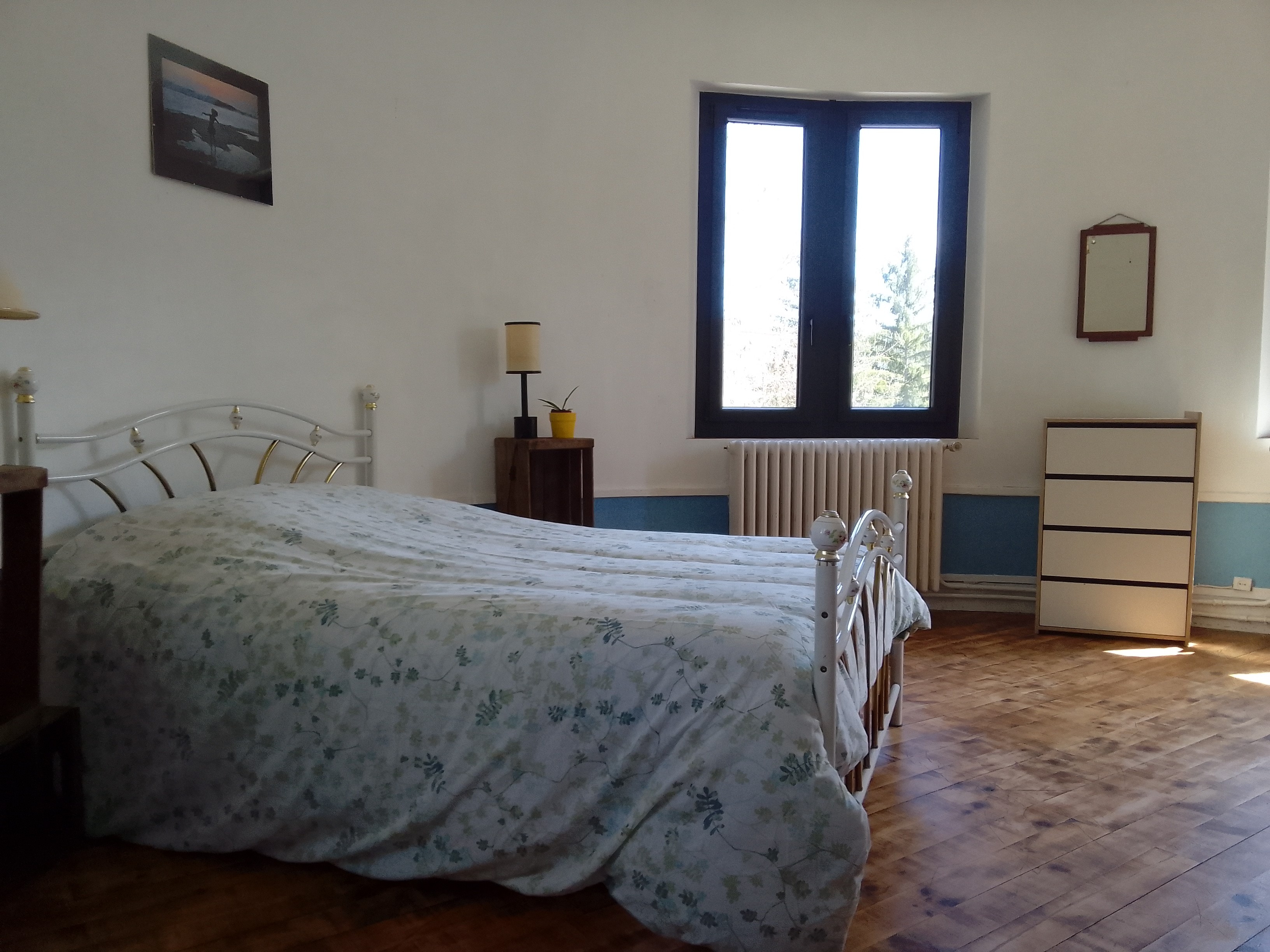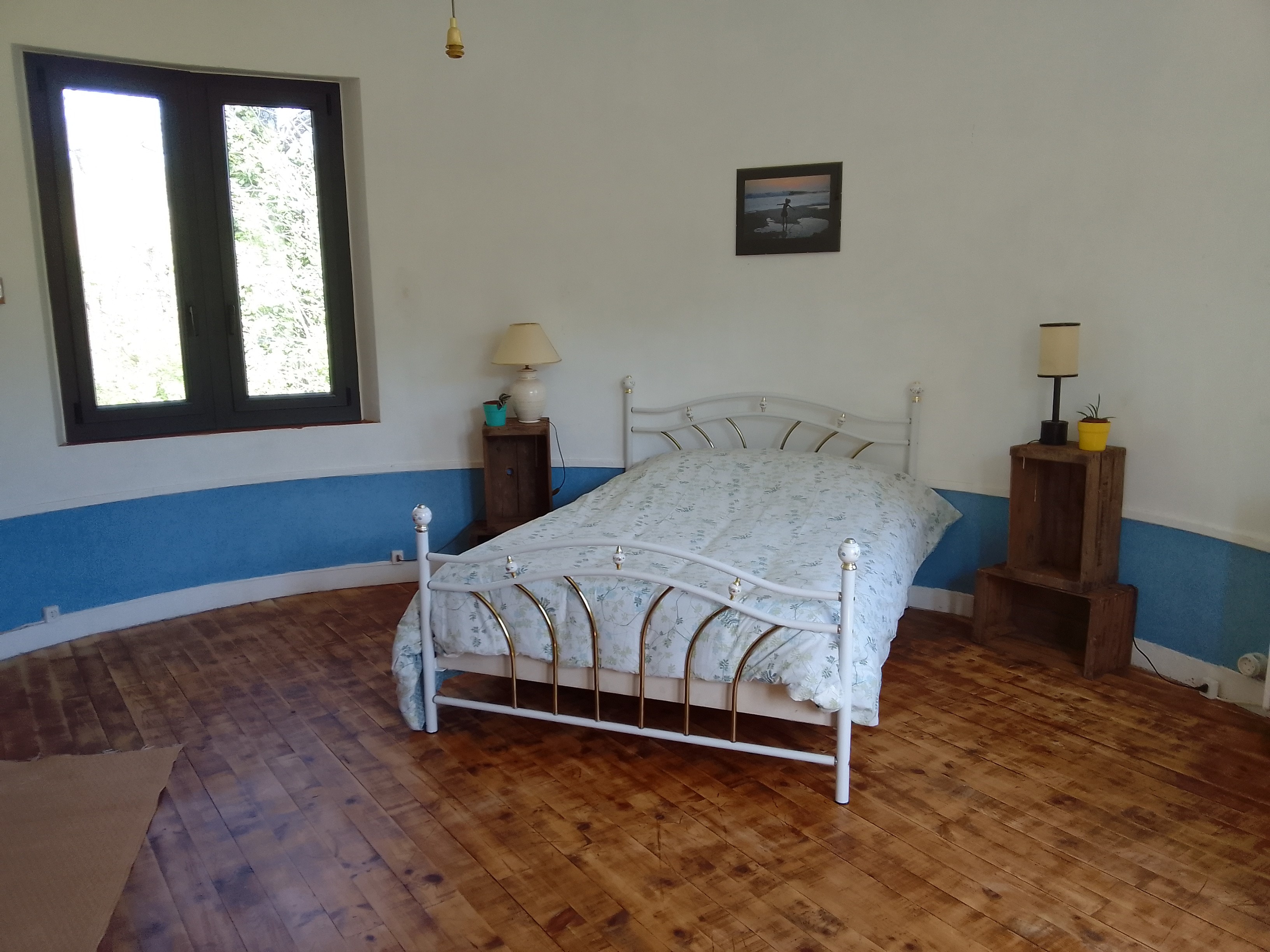 On accède à cette belle chambre ronde, parquet en bois au sol, par un étroit escalier en colimaçon. Elle mesure environ 35 m2 et est très lumineuse du fait de ses trois grandes fenêtres, qui permettent d'avoir une vue panoramique sur les alentours.